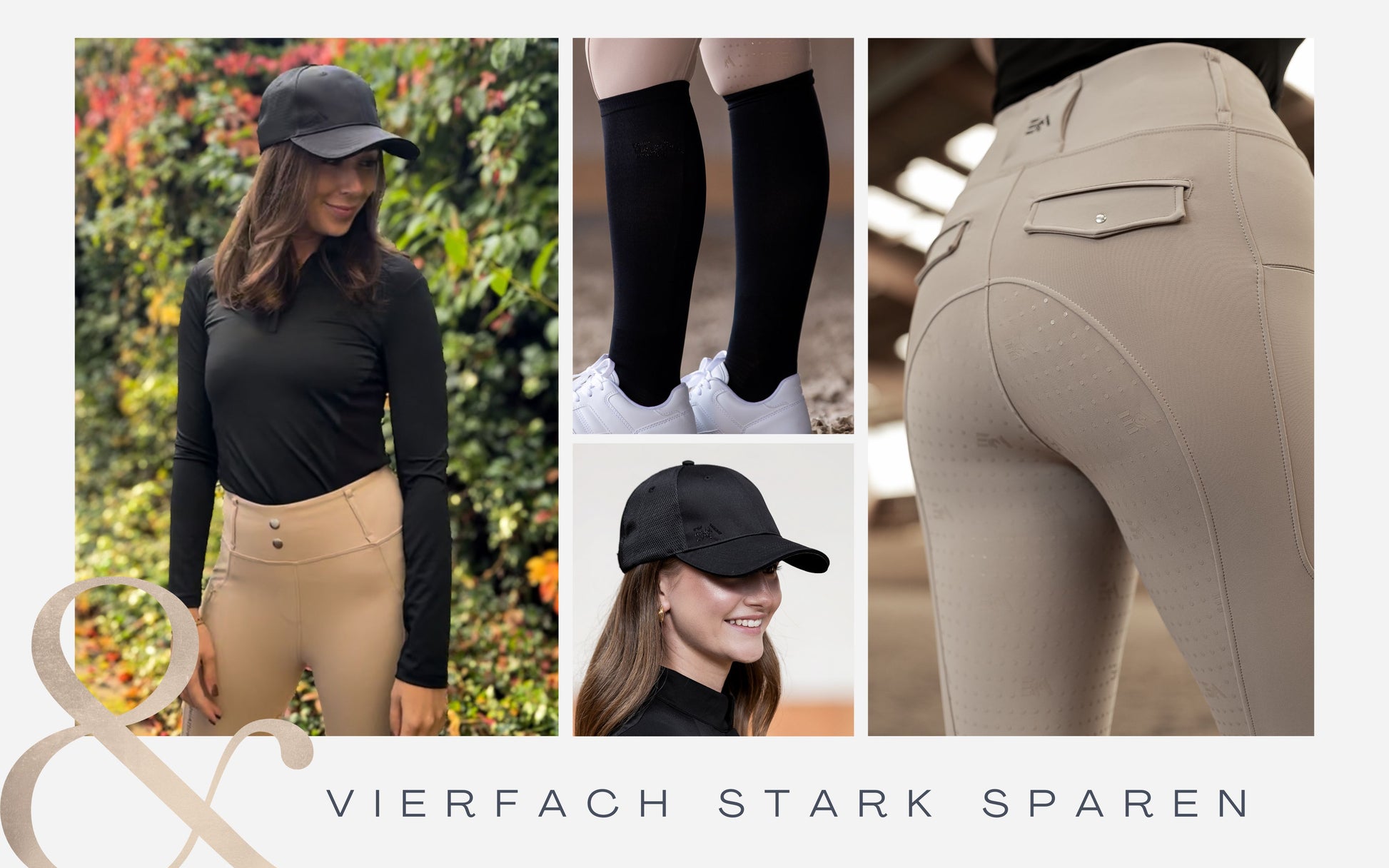 Das Bündel "Jasmin’s (teampuppenkiste) Top Four Essentials" umfasst 4 Produkte von EquiAttire: Den Baselayer Long Sleeve - schwarz und das Herzstück, die All-inclusive Reitleggings - anthrazit, die EquiAttire Cap - schwarz, sowie die eleganten EquiAttire Reitsocken - schwarz!